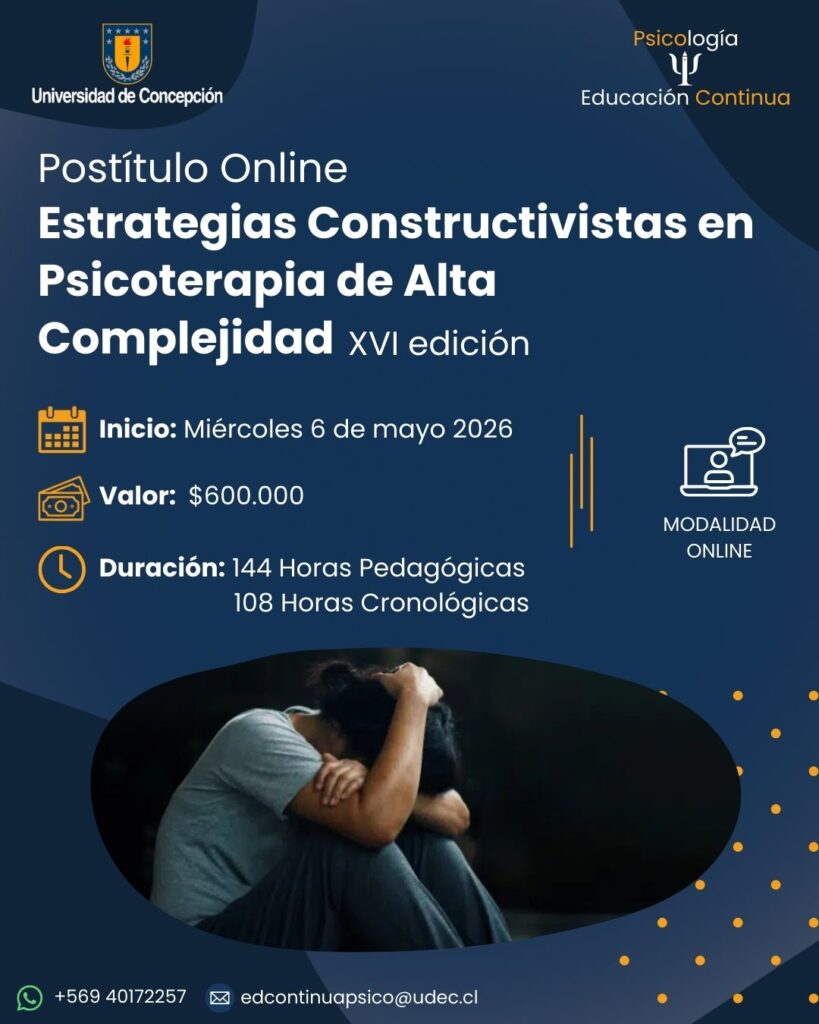 - Conocerán los aspectos teóricos y mecanismos de trabajo en psicoterapia constructivista con personas con cuadros clínicos de alta complejidad.